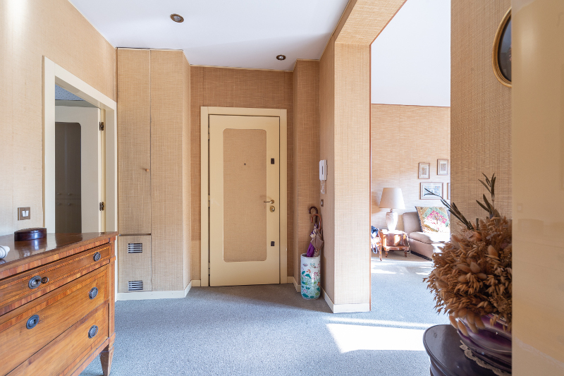 L’immobile ha la doppia esposizione, conservato in perfette condizioni interne, ottimi e pregiati arredi su misura in tutto l’appartamento, arioso, silenzioso e luminosissimo; infissi con i doppi vetri e porta blindata.