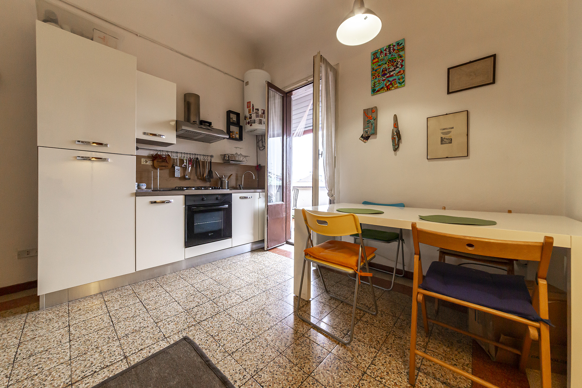 L’appartamento presenta splendide finiture originali d’epoca ed è così composto: ampio ingresso, soggiorno con cucina a vista con accesso allo splendido e riservatissimo terrazzo, ampissima camera matrimoniale (con secondo accesso al terrazzo), spazioso bagno finestrato. L’immobile trovandosi al QUINTO piano gode di un’ottima vista panoramica su Via Fucini – Piazza Bernini, luminosissimo e silenziosissimo.