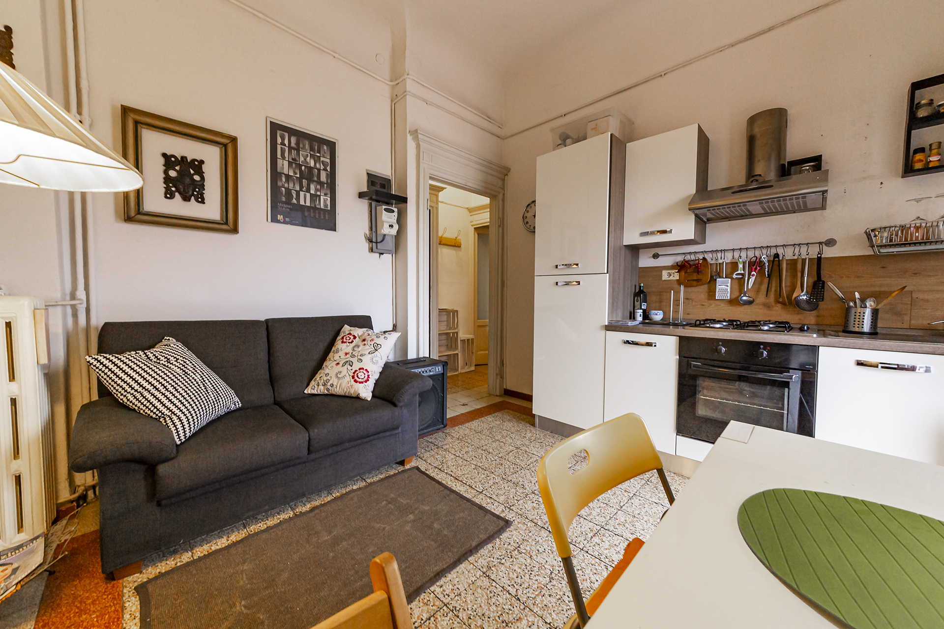 Mantenuti intatti i dettagli originali dell’appartamento: rara pavimentazione d’epoca originale recuperata e restaurata, infissi interni ed esterni originali, stucchi originali sui soffitti, radiatori originali in ghisa dei primi del ‘900.