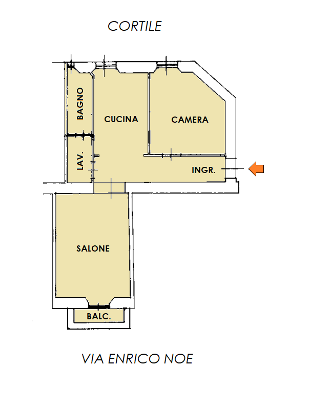 L’appartamento di circa 80 mq commerciali è sito al terzo piano con ascensore e la disposizione dei locali è la seguente: ampio ingresso, ampio salone su Via Enrico Noe con balcone con vista panoramica su Via Noe e Viale Abruzzi, spaziosa ed abitabile cucina, ampia camera matrimoniale, spazioso antibagno con lavanderia e ampio bagno finestrato. L’immobile è molto luminoso con doppia esposizione sulla via e sul cortile interno, balcone ed ampio solaio di pertinenza.
