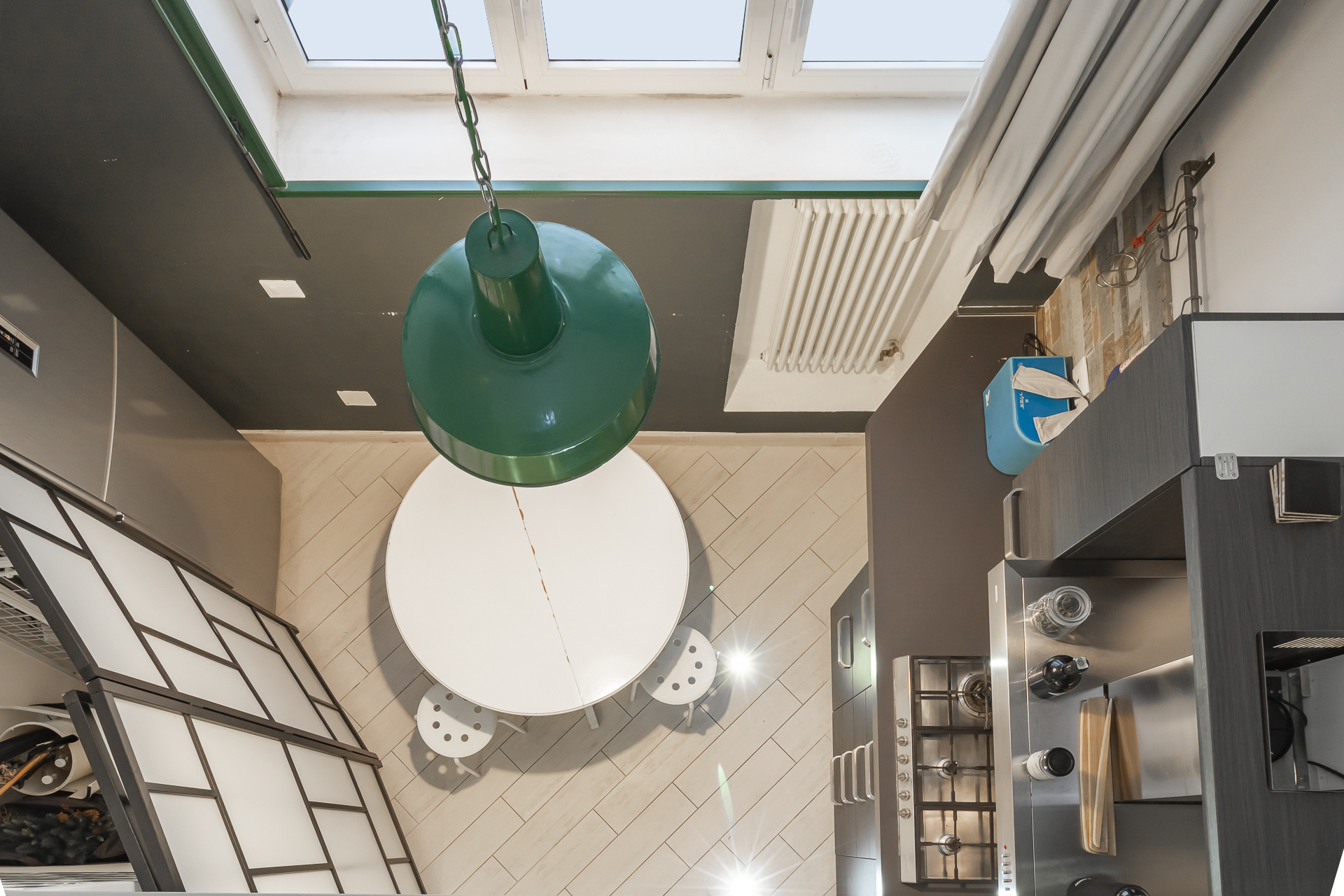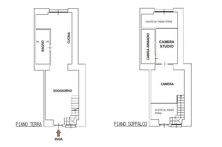 L’appartamento finemente ristrutturato da architetto e completamente arredato è disposto su due livelli. La diposizione è la seguente: al piano terra troviamo l’ingresso che da direttamente sull’ampio salone, spaziosa cucina abitabile, comodo bagno; il piano terra è collegato da una comoda scala interna ad un ampio soppalco dov’è ubicata la zona notte composta da camera matrimoniale, ampissima cabina armadio e una comoda zona studio o seconda cameretta.